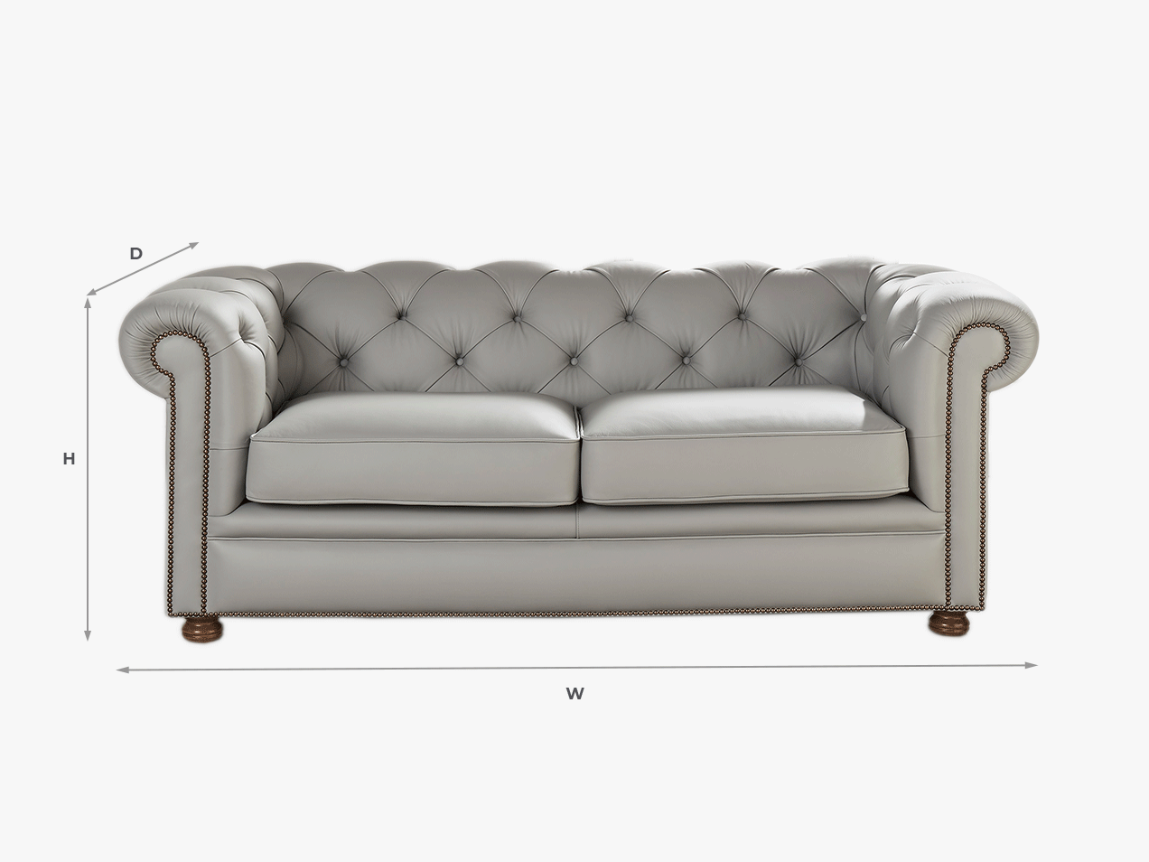 Below we have detailed the overall sizes of this range along with the price. The prices shown are prices from so please note that some bespoke options and leather and fabric ranges are priced higher than those shown. Also if you choose a different foot option, the overall height will increase/decrease depending on your choice. Please call our sales team for any size specific enquiries as all of our ranges can be made to any size. Please note as everything is hand made we have a +/- 5cm allowance on all of our ranges.