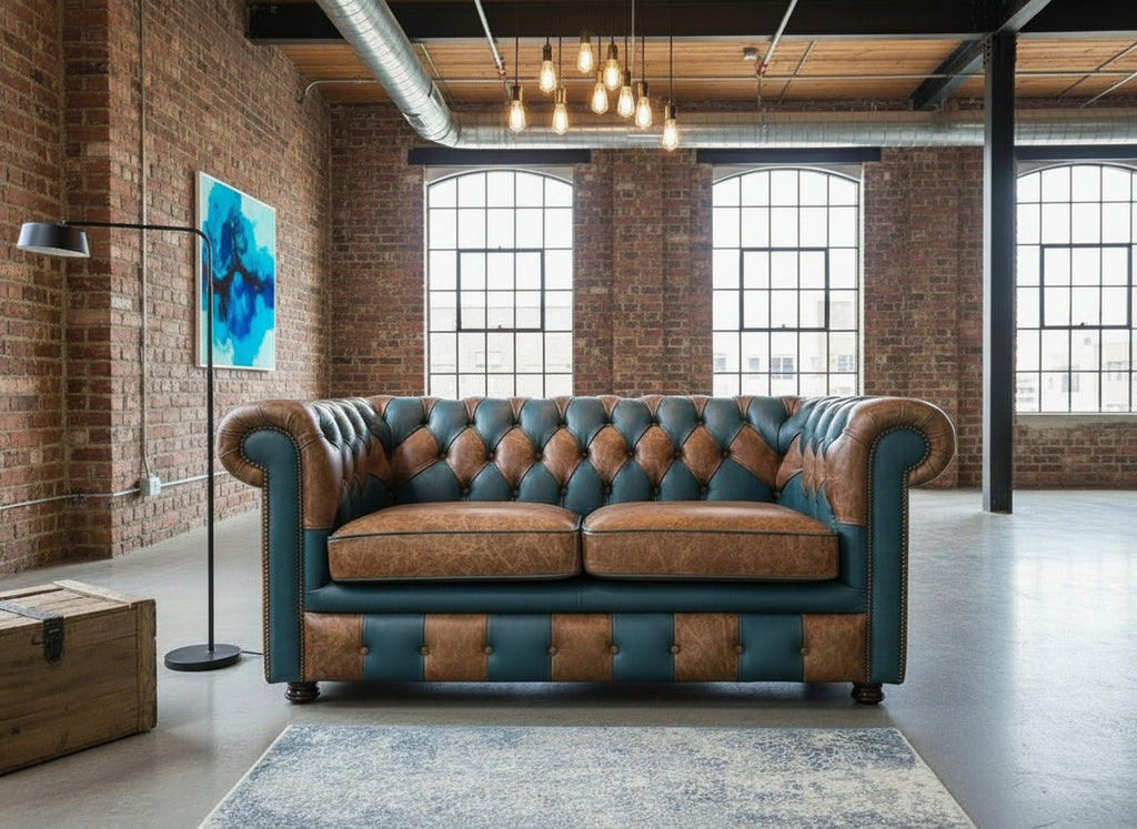 • Upholstered In Whiskey & Turquoise Leather from the Saloon Range