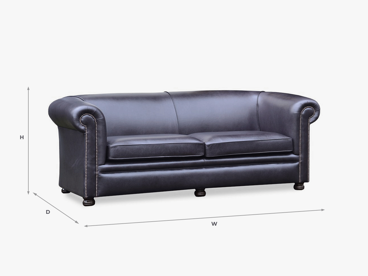 Below we have detailed the overall sizes of this range along with the price. The prices shown are prices from so please note that some bespoke options and leather and fabric ranges are priced higher than those shown. Also if you choose a different foot option, the overall height will increase/decrease depending on your choice. Please call our sales team for any size specific enquiries as all of our ranges can be made to any size. Please note as everything is hand made we have a +/- 5cm allowance on all of our ranges.